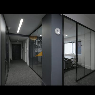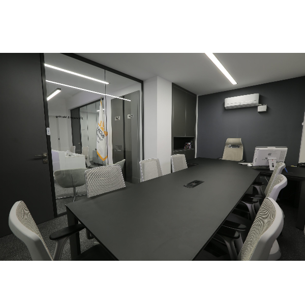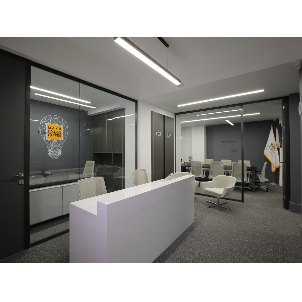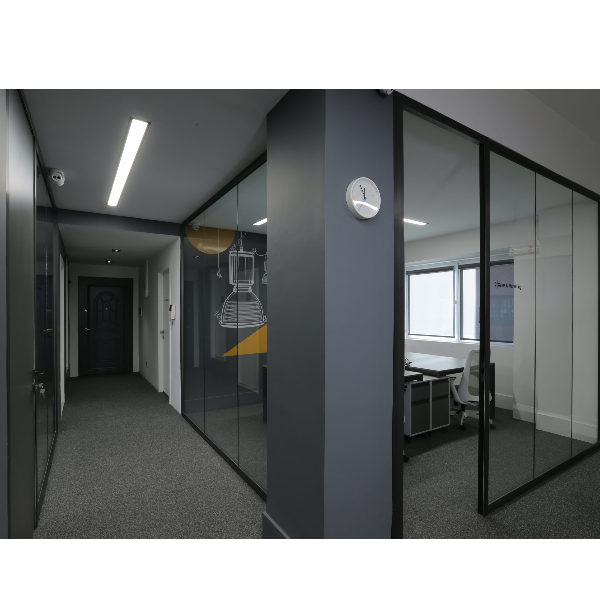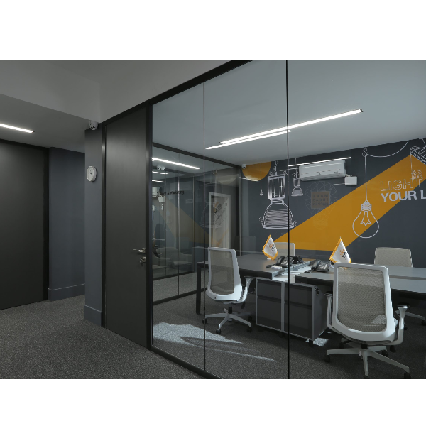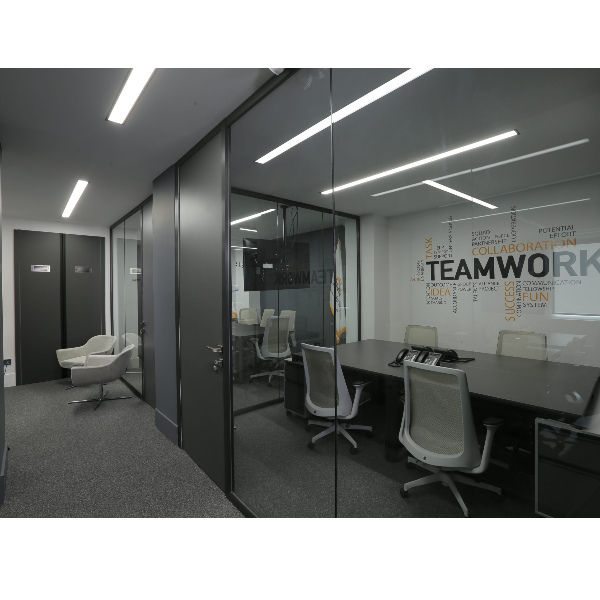 پارتیشن یونیکا با پروفیل دودی و ۴ عدد درب چوبی خاکستری